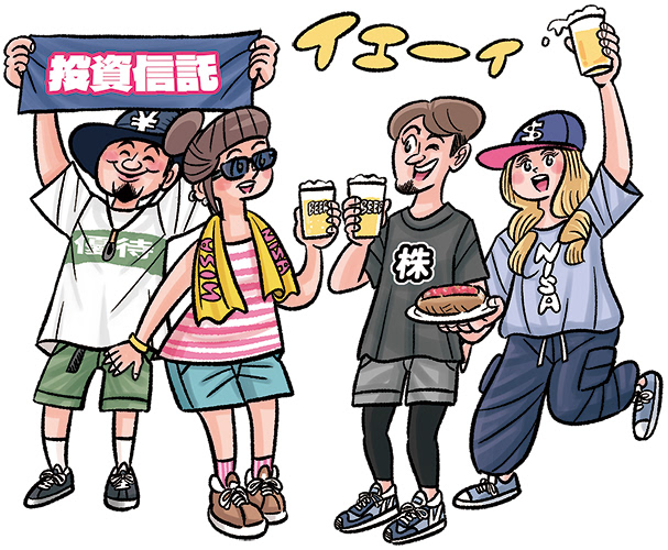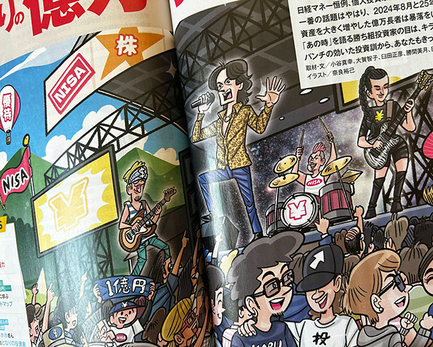 巻頭特集「となりの億万投資家 大研究」各トビライラスト