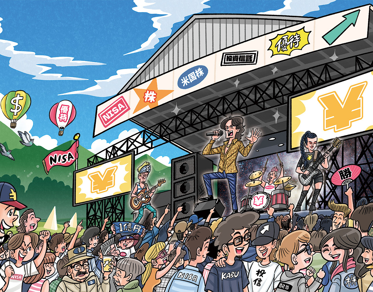 巻頭特集「となりの億万投資家 大研究」各トビライラスト